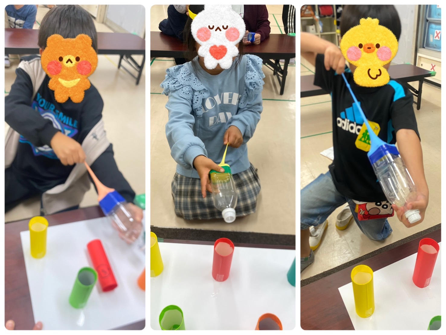 「パタン!」と音を立ててお化けが倒れた瞬間、最高の笑顔が溢れました。 「次はもっと遠くのお化けも倒したい!」と意欲を見せる姿も見られ、活動を通して達成感を味わうことができました。